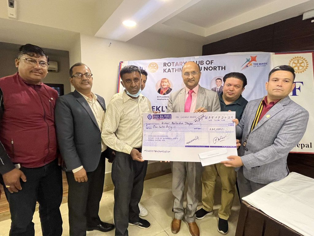 काठमाडौं ।रोटरी क्लब अफ काठमाडौं नर्थले गोर्खाको शहिदलखन गाउँपालिका वडा नम्बर,८ कुवापानीका मृगौला पीडित कुमारबाबु थापालाई रु. एक लाख आर्थिक सहयोग गरेको छ ।