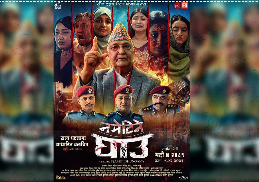 २३साउन,काठमाडौं।चलचित्र ‘नमेटिने घाउ’को फस्टलुक सार्वजनिक भएको छ। सोमबार सार्वजनिक भएको पोष्टरमा प्रधानमन्त्री केपी शर्मा ओली मुख्य रूपमा देखिएका छन्।
