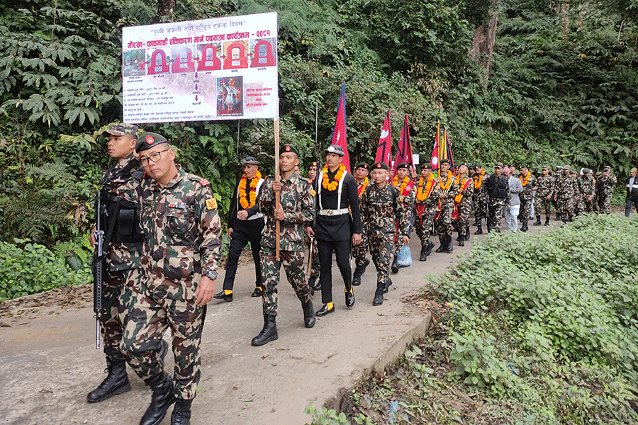 २१, पुस गोरखा । गोरखा–काठमाडौं एकीकरण पदमार्गमा नेपाली सेनाको छैटौँ संस्करणको पदयात्रा सुरु भएको छ । आइतबार गोरखा दरबारको हनुमान भन्ज्याङबाट यात्रा सुरु भएको हो ।