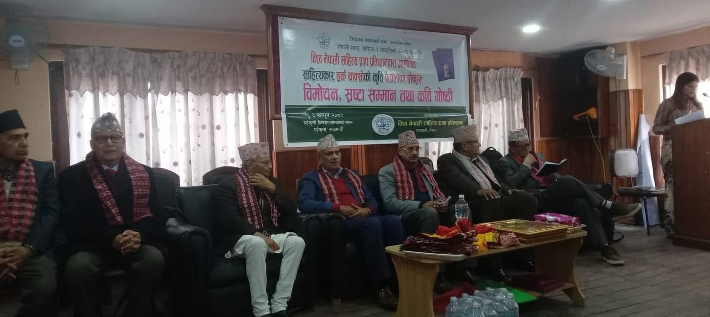 विश्व नेपाली साहित्य प्रज्ञा प्रतिष्ठानको आयोजनामा शनिबार काठमाडौंको घट्टेकुलो स्थित घट्टेकुलो विकास समाजको भवनको एक सभाहलमा नेपाल प्रज्ञा प्रतिष्ठानका पूर्व उपकुलपति डा.विष्णुविभु घिमिरेको प्रमुख आतिथ्यतामा उक्त कार्यक्रम निकै भव्य र सभ्य रुपमा सम्पन्न भएको प्रतिष्ठानका अध्यक्ष गोपीकृष्ण प्रसाइँले बताए।