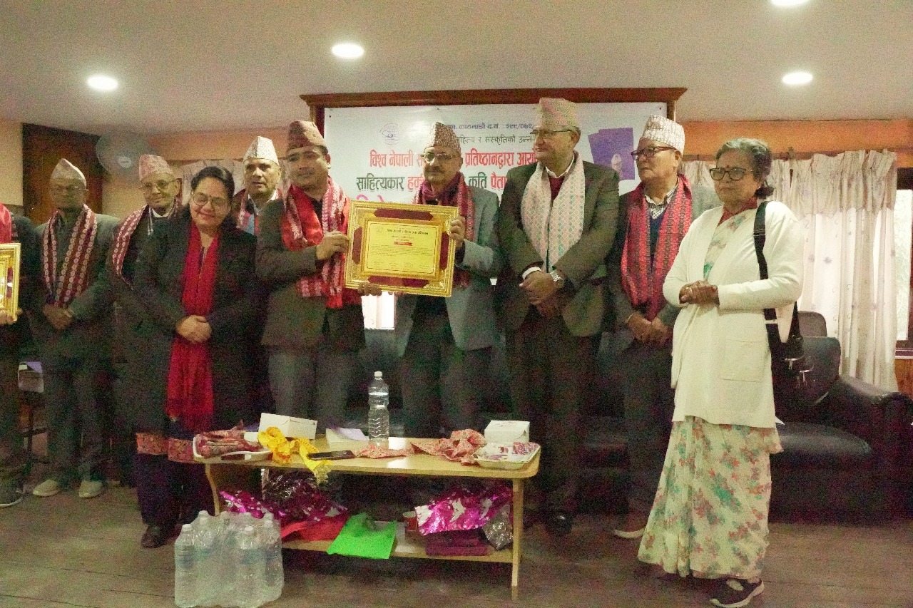 ४ फागुन,काठमाडौं ।नेपाली भाषा,साहित्य र संस्कृतिको उनन्नयनका लागि सधैं अग्रसर साहित्यप्रेमीहरु आबद्ध रहेको संस्था ‘ विश्व नेपाली साहित्य प्रज्ञा प्रतिष्ठान’ ले कवि गोष्ठी तथा श्रष्टा सम्मान कार्यक्रम सम्पन्न गरेको छ।