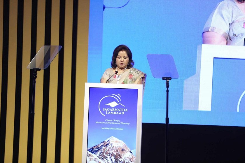 २, जेठ काठमाडौं । परराष्ट्रमन्त्री डा।आरजु राणा देउवाले हिमालहरु मानव जातिका साझा स्रोत भएको बताएकी छन् । ‘जलवायु परिवर्तन, हिमाल र मानव जातिको भविष्य’ विषयमा पहिलो पटक आज यहाँ आयोजित ‘सगरमाथा संवाद’ को उद्घाटन सत्रमा स्वागत मन्तव्य व्यक्त गर्दै उनले हिमाल करोडौँ मानिसको ताजा पानीको स्रोत बनेको बताइन् ।