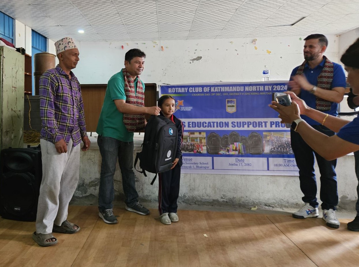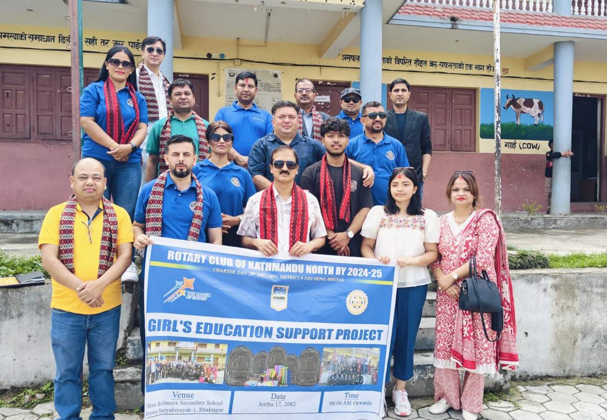 १८ जेष्ठ,भक्तपुर ।रोटरी क्लब अफ काठमाडौं नर्थले यस वर्ष पनि सामाजिक उत्तरदायित्व अन्तर्गत शिक्षामा महत्वपूर्ण योगदान दिंदै भक्तपुरको कुलमाया भगवती माध्यमिक विद्यालय,सिरुटारका २० जना छात्राहरूको पढाइमा सहयोग गरेको छ।