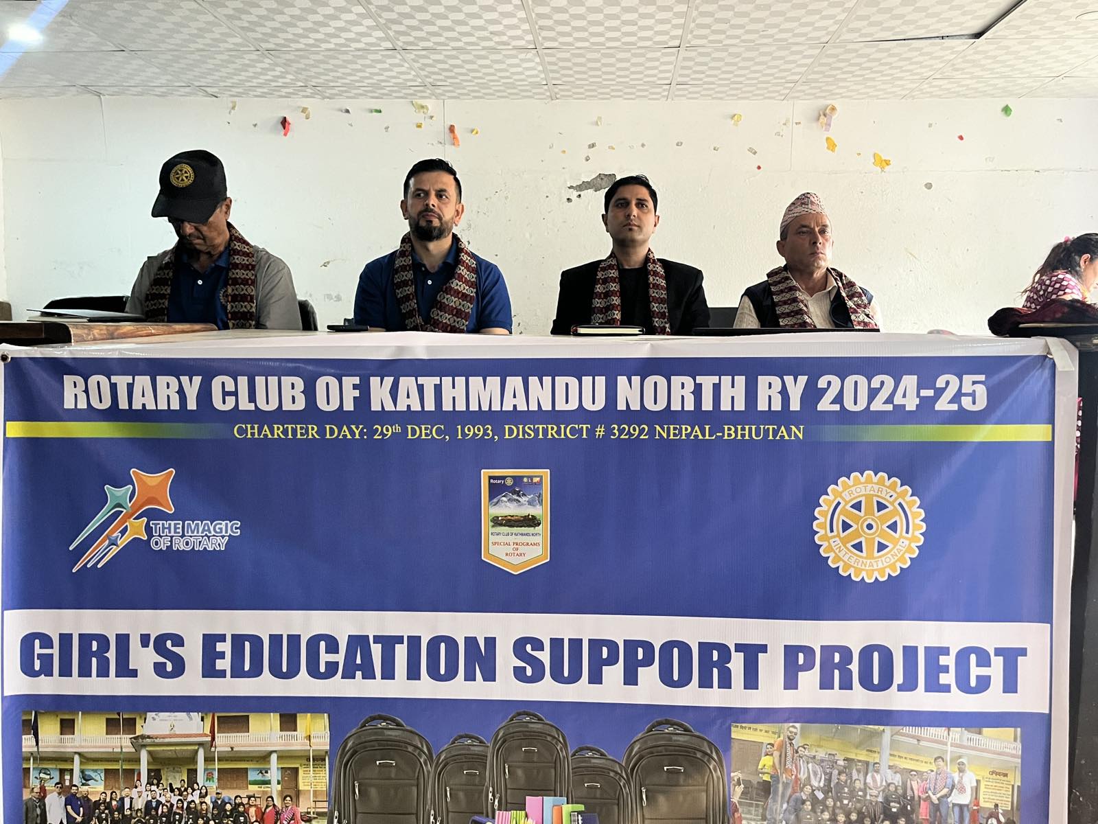 कार्यक्रममा क्लबका अर्का पाष्ट प्रेसिडेन्ट गणेश पौडेल,अघिल्लो रोटरी वर्षका ट्रेजरर निकेश स्थापित र प्रेसिडेन्ट नोमिनी (आगामी वर्षका प्रेसिडेन्ट) प्रदिप थापाले रोटरीले शैक्षिक प्रवद्र्धनमा,छात्राहरुको शिक्षामा साथ, विद्यालय निर्माण,छात्रावृत्ति,शैक्षिक सामाग्री वितरण,टिच लगायतका कार्यक्रमहरु गदै आइरहेको छ ।भने,स्वास्थ्यमा पोलियो उन्मुलन,अस्पतालका लागि स्वास्थ्य सामग्री वितरण,सुरक्षित सुत्केरी सेवा,निःशुल्क स्वास्थ्य शिविर,लगायतका कार्यक्रमहरु गर्दै आइरहेको छ ।