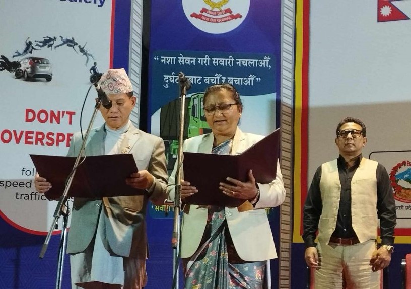एमालेबाट मन्त्री नियुक्त भएका सीता सुन्दास र वेदबहादुर गुरुङले सोमबार दिउँसो प्रमुख डिल्लीराज भट्टबाट सो शपथ लिएका हुन् ।