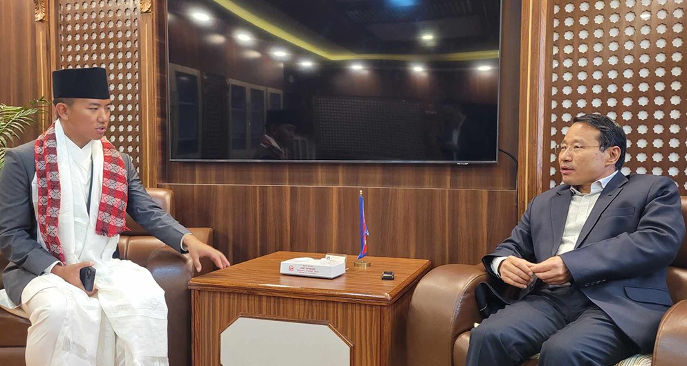 काठमाडौं ।इलाम–२ का नवनिर्वाचित सांसद सुहाङ नेम्वाङले अर्थमन्त्री वर्षमान पुनलाई भेटेका छन् । प्रतिनिधिसभा सदस्यको शपथ लिएलगत्तै उनी इलाम विकासको कार्य योजनाको सूचि लिएर अर्थमन्त्री भेट्न अर्थमन्त्रालय पुगेका हुन्।