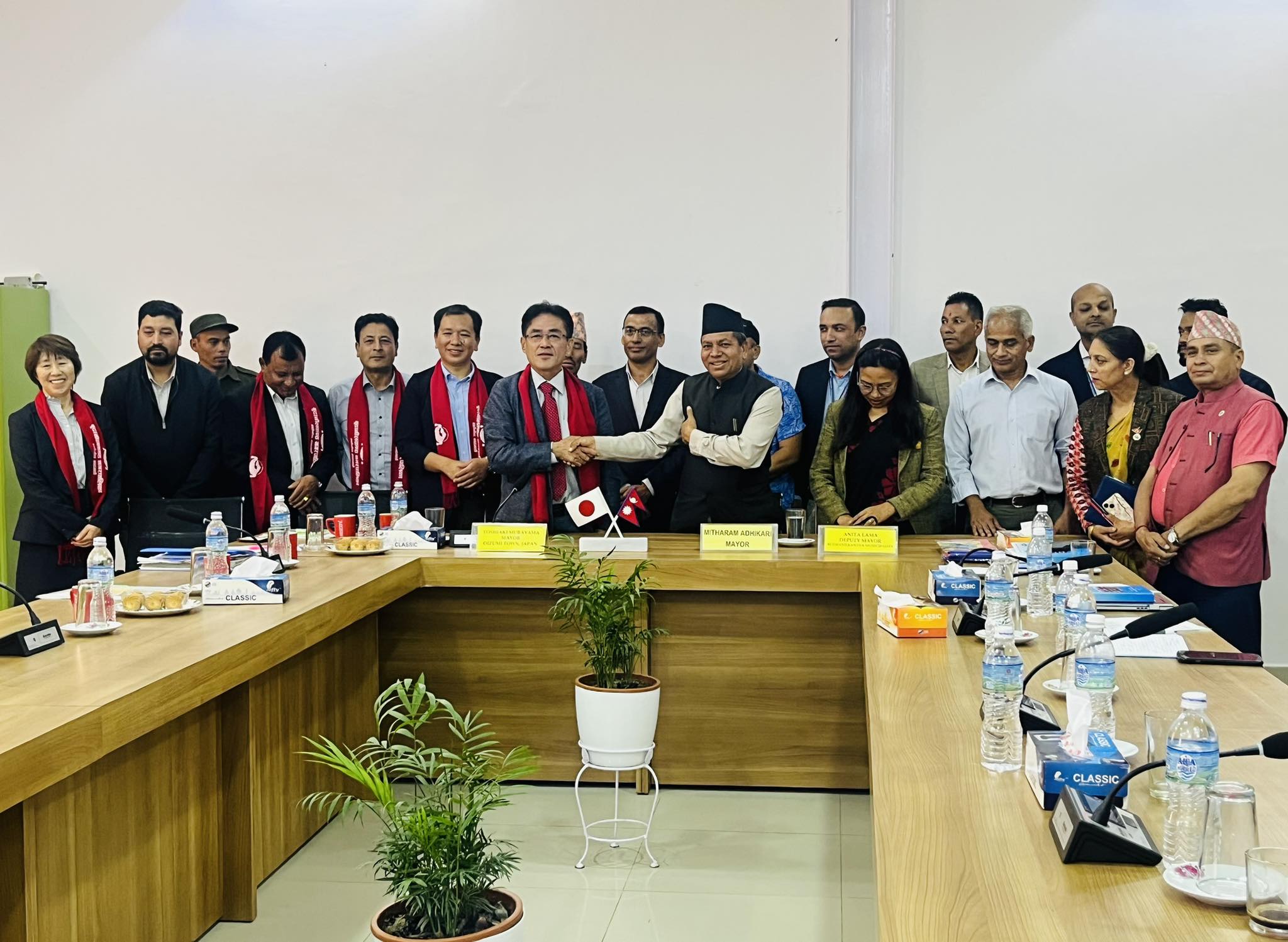 जेठ १ गते (हिजो) मंगलबार जपानका नगर प्रमुख (मेयर) तोसिआकीसहित उनका स्वकिय सचिव ताकोई सिहायुकी,त्यहाँको बहुसाँस्कृतिक विभागका प्रबन्धक फुकुदा मासामी सान र सोही विभागका सान खुनिको हासेगावा,नेपाल साझा समाजका अध्यक्ष वुद्धि सेरचन,सल्लाहकार रन्जय अमात्य,महासचिव निरज गुरुङ र पूर्व महासचिव गोपाल पोखरेल गरि थप ४ जना इन्टरप्रेनर सहितको टोलीलाई स्वागत गरिएको हो।