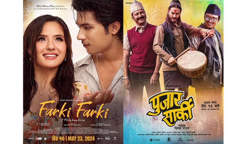 बुद्ध जयन्तीको अवसरमा आज दुई नेपाली चलचित्रहरु हलमा रिलिज भएका छन् । आजबाट चलचित्र ‘पुजार सार्की’ र ‘फर्की फर्की’ प्रदर्शन हुन लागेका हुन् । केही दिन अघिबाट अग्रिम टिकट बुकिङ सुरु गरेका दुई चलचित्रहरुले बराबरी रुपमा शोहरु पाएका छन् ।