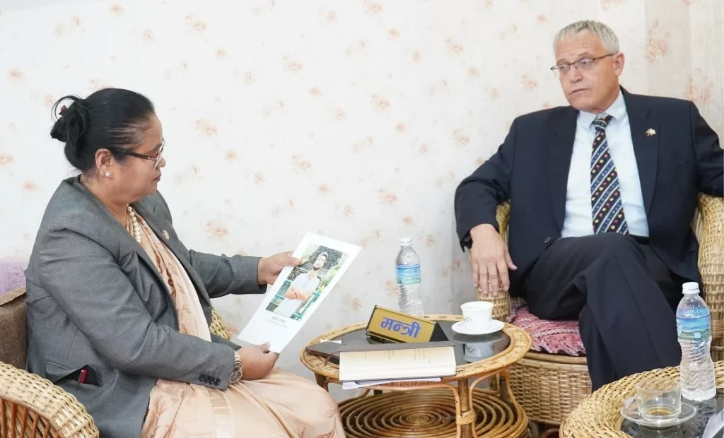 काठमाडौँ । महिला, बालबालिका तथा ज्येष्ठ नागरिक मन्त्री भगवती चौधरी र नेपालका लागि इजरायली राजदूत हनान गोडरबिच शिष्टाचार भेटघाट भएको छ ।