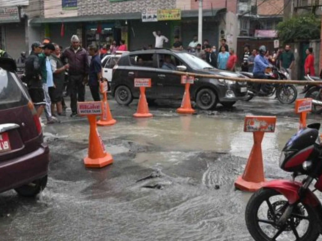 काठमाडौं । काठमाडौंको सोह्रखुट्टेमा सडक भासिएको छ । सोह्रखुट्टे चोकबाट बालाजुतर्फ करिब १०० मिटर अगाडी सडक भासिएर पानी निस्किरहेको छ । बिहान करिब साढे ६ बजेतिर सडक भासिँदा दुईजना सवार बाइक पसेको थियो ।