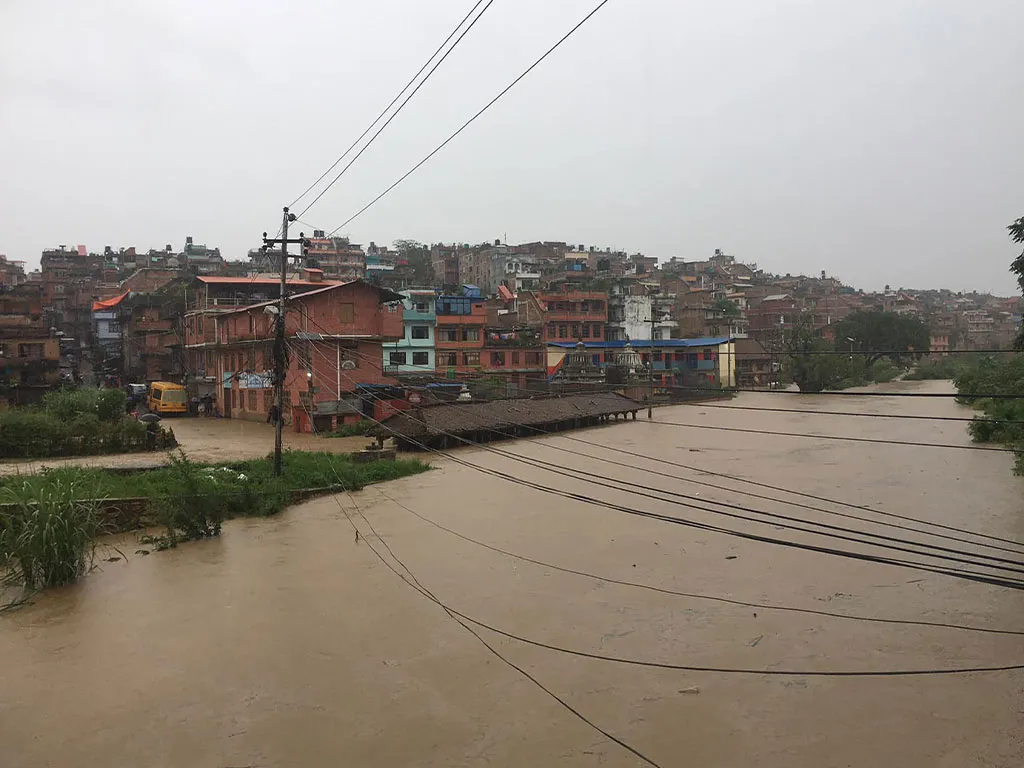 भारी वर्षाका कारण खोलाको तटीय क्षेत्रमा बाढी बस्तीमा पसेपछि भक्तपुरको हनुमान घाँट, सूर्य विनायकका राममन्दिर, शान्ति निकेतन माध्यमिक विद्यालय, बाराहीस्थानलगायत क्षेत्र डुबानमा परेको छ । राममन्दिर, बाराही स्थानका मन्दिर, विद्यालय र नदी किनारका बस्तीमा पानी पसेको छ ।