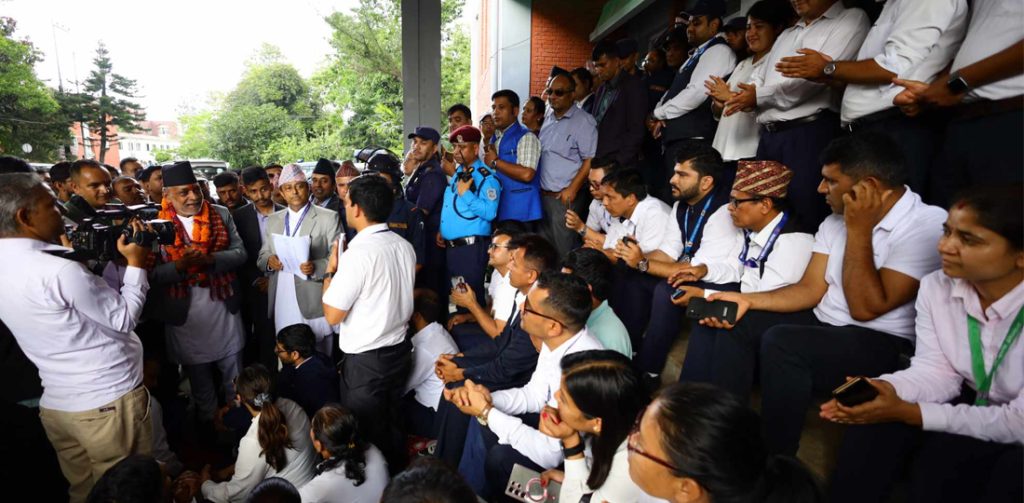 सोमबार शपथ ग्रहण गरे लगत्तै मन्त्रालय पुगेका मन्त्री अधिकारीले आन्दोलनरत कर्मचारीसँग केहीबेर कुराकानी गरे पनि पदभार ग्रहण नगरेका हुन् ।